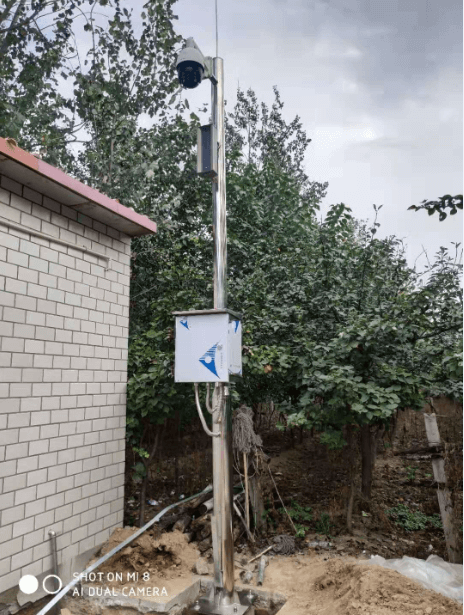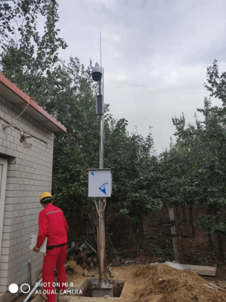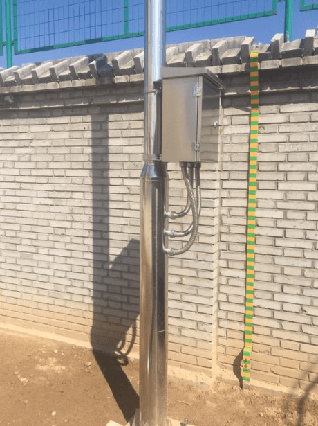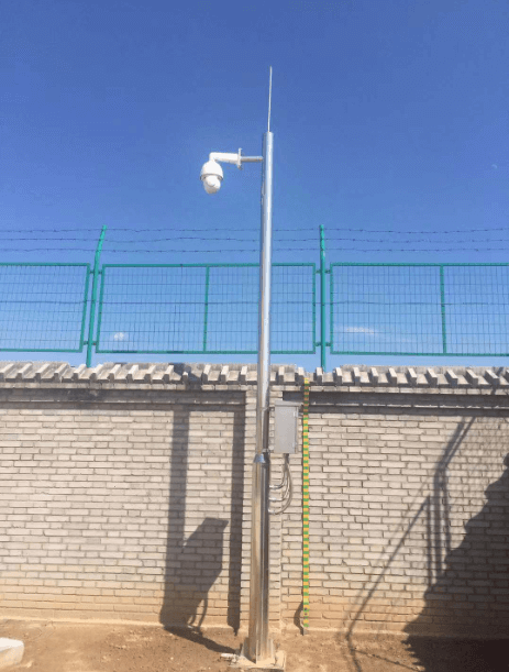 施工現場,監(jiān)控桿高度4.5米,材質為純304不銹鋼,壁厚4mm。